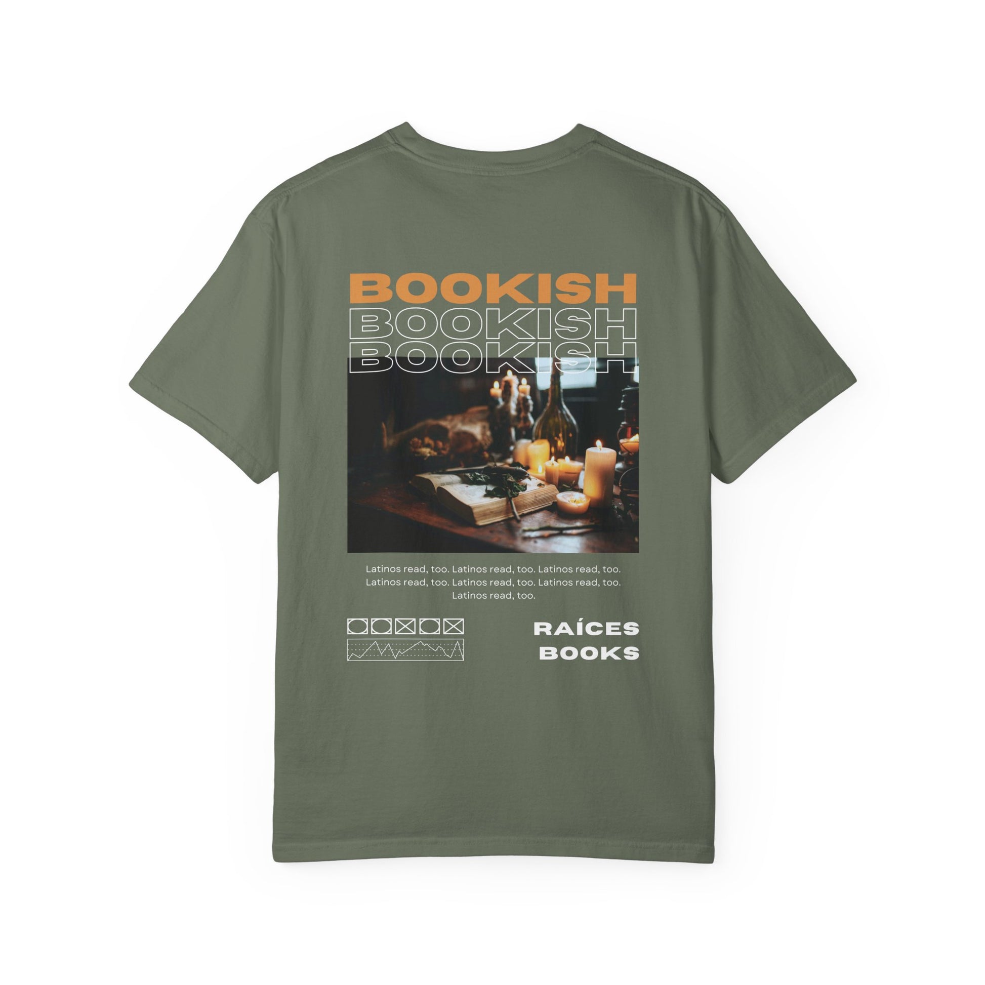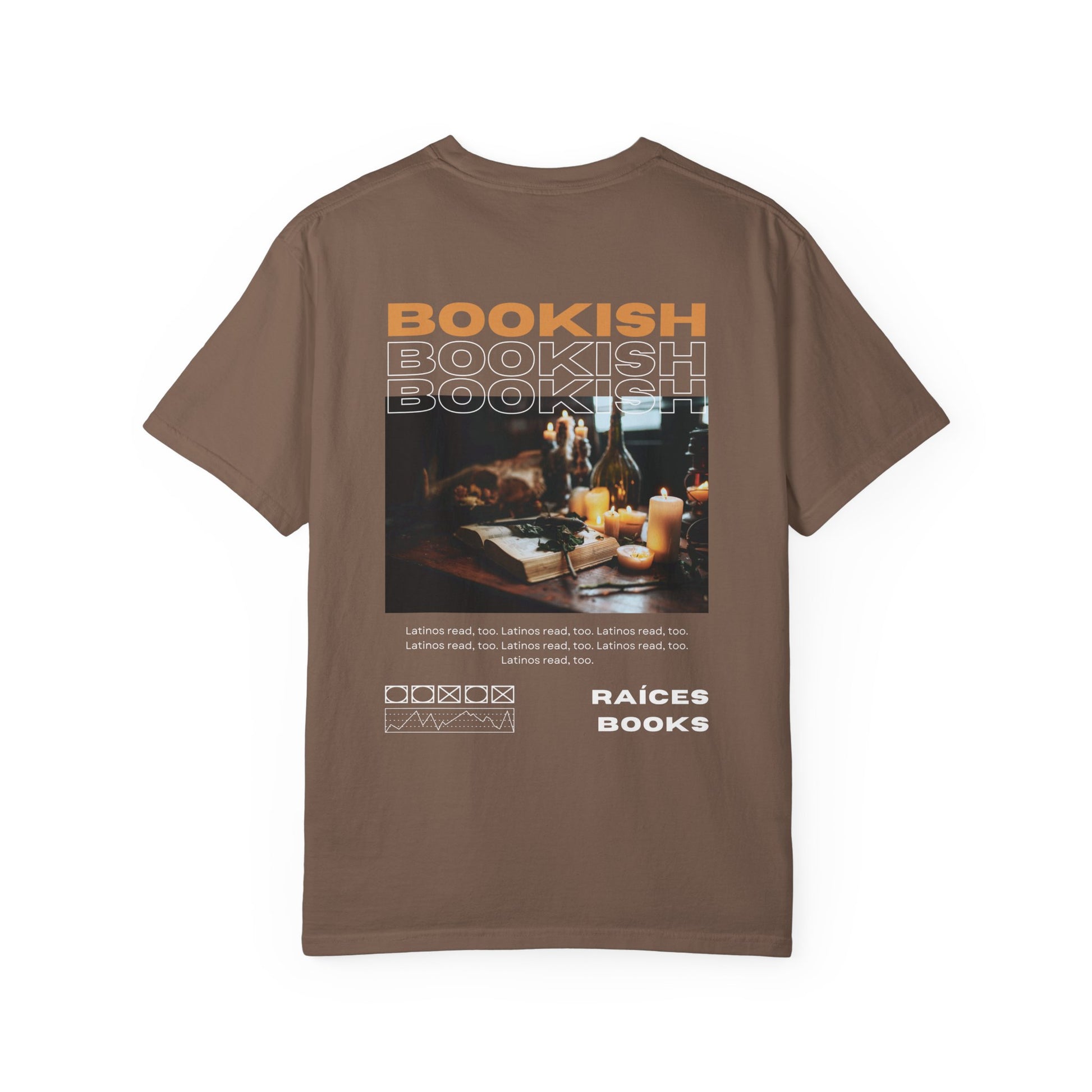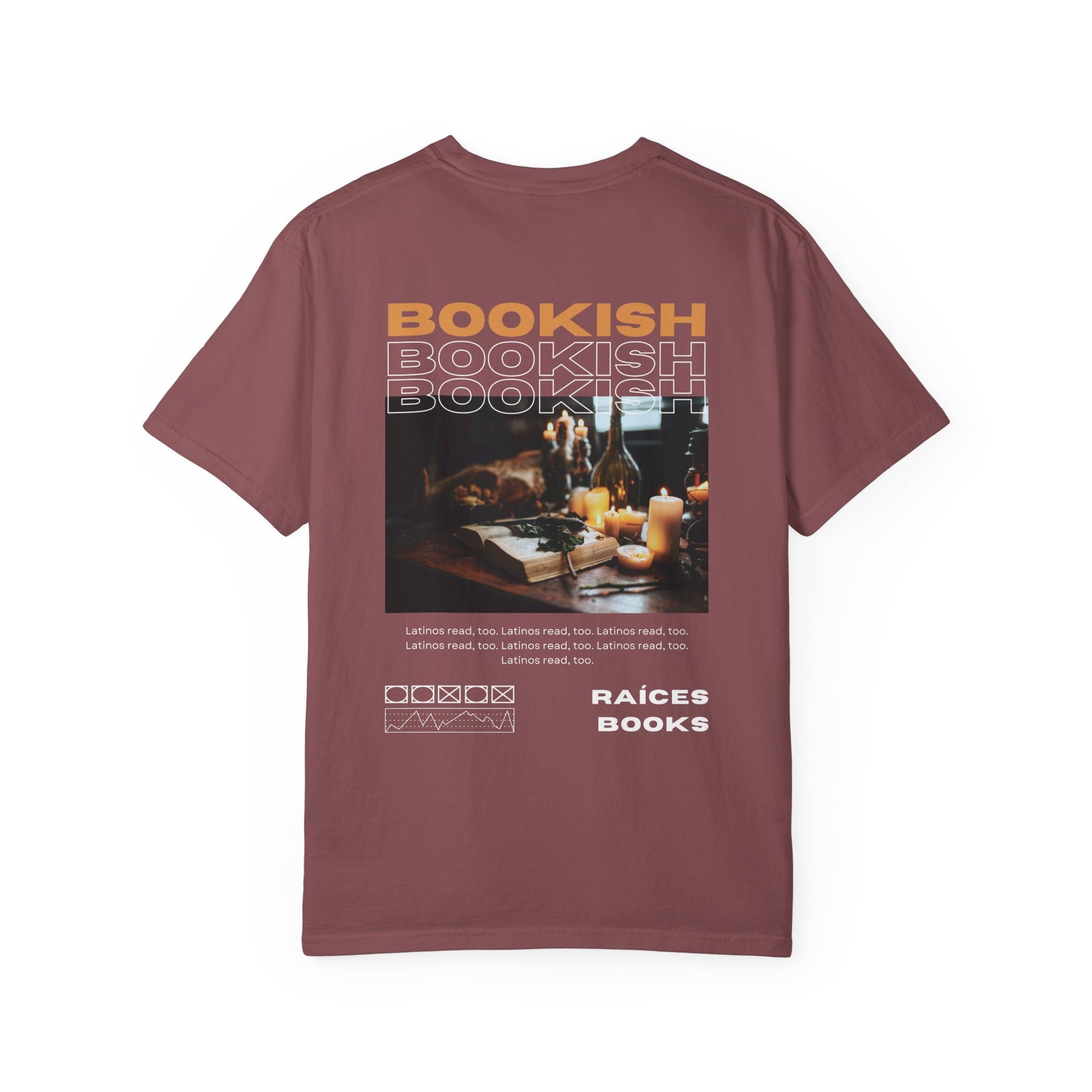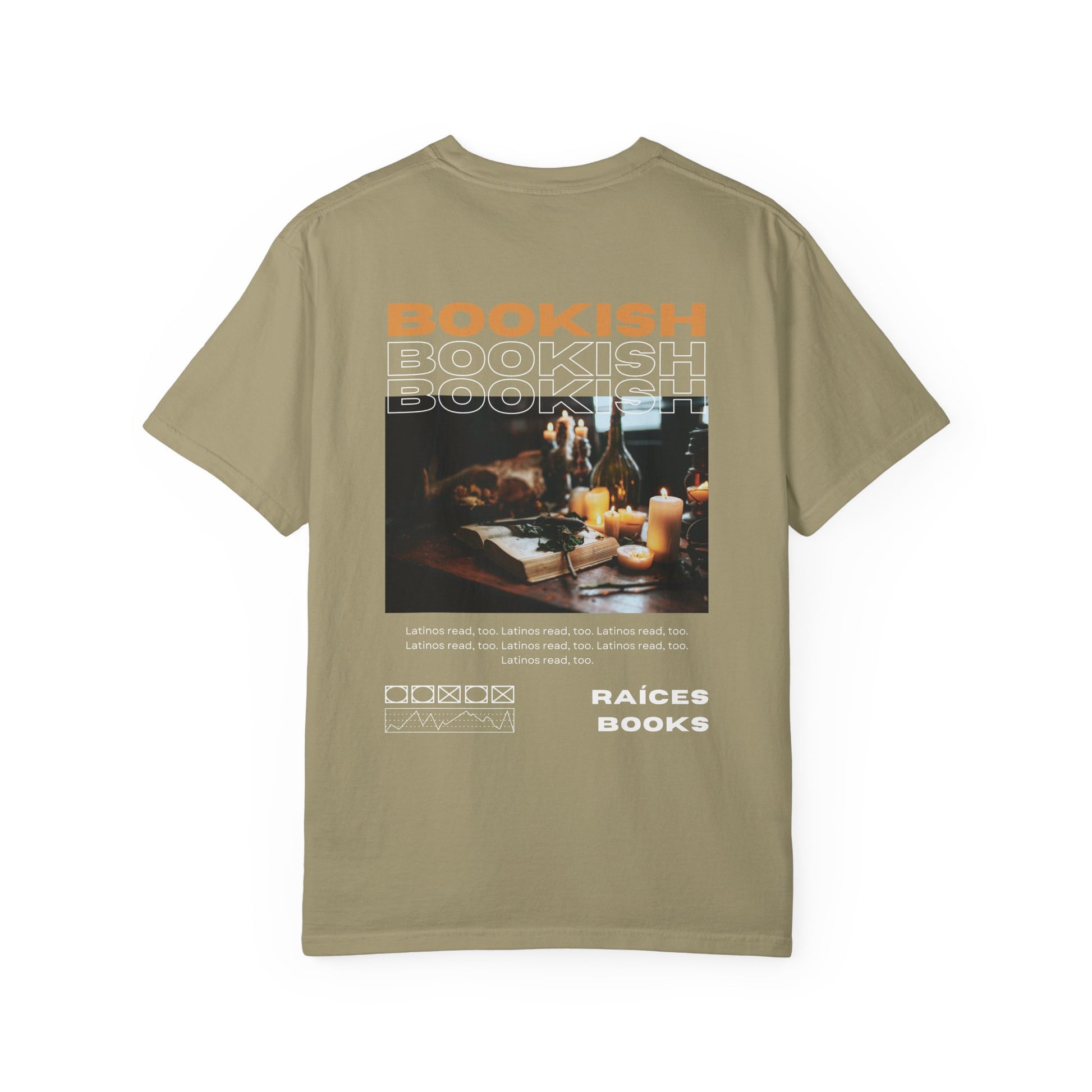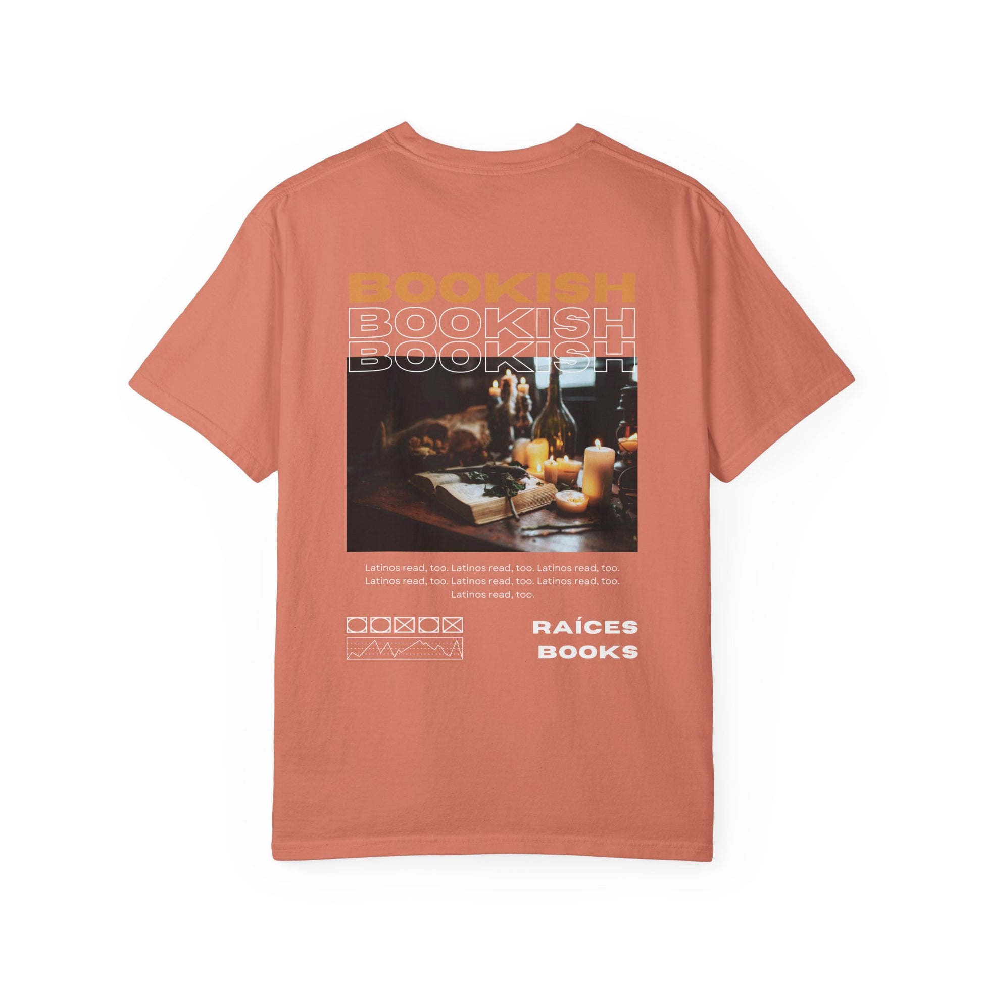 Bookish Latino Garment-Dyed T-shirt with Candles and Books Design
