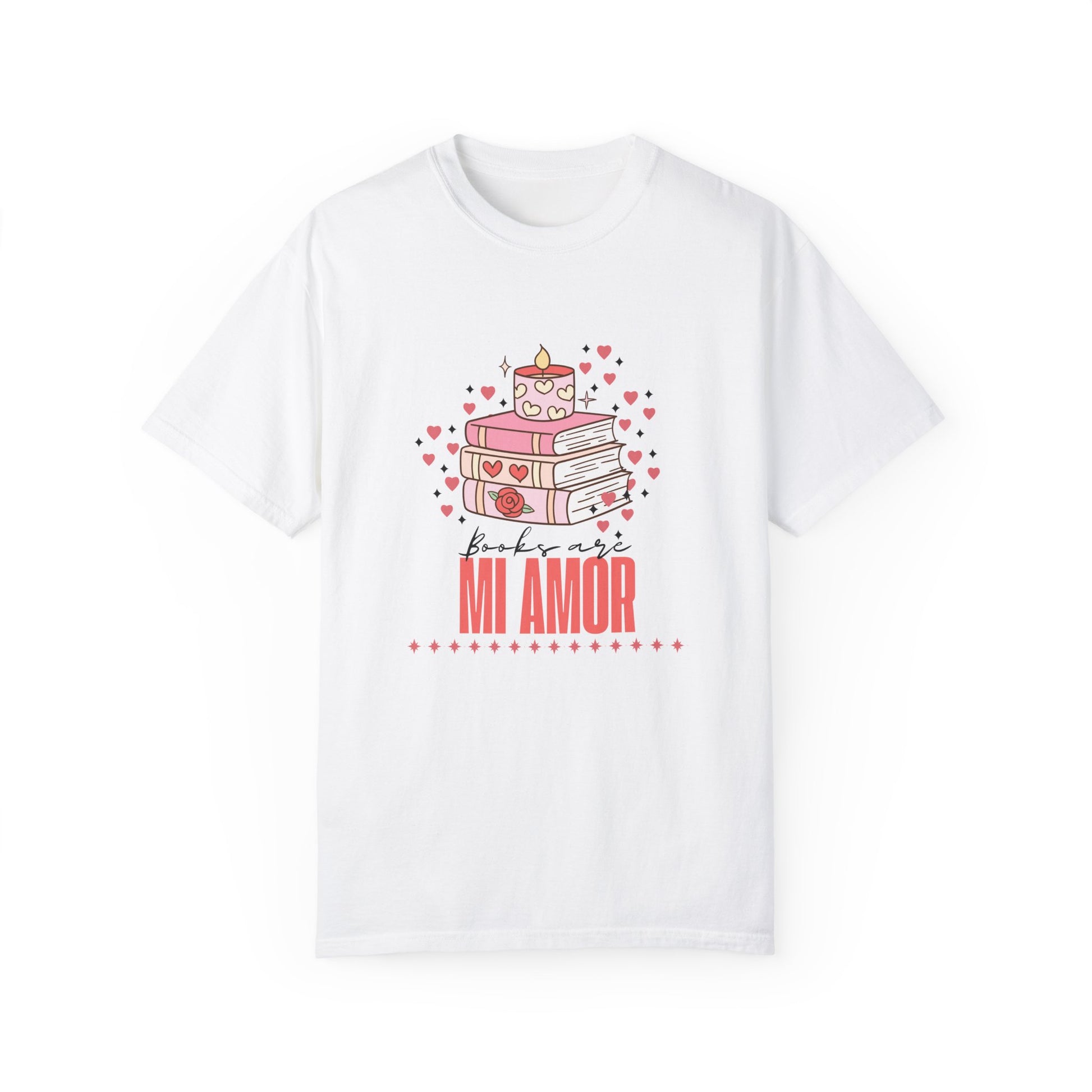 Wrap yourself in the comfort of love and literature with our "Books Are Mi Amor" t-shirt. Printed on a premium Comfort Colors shirt, this design combines softness and durability with a bold celebration of stories and culture.