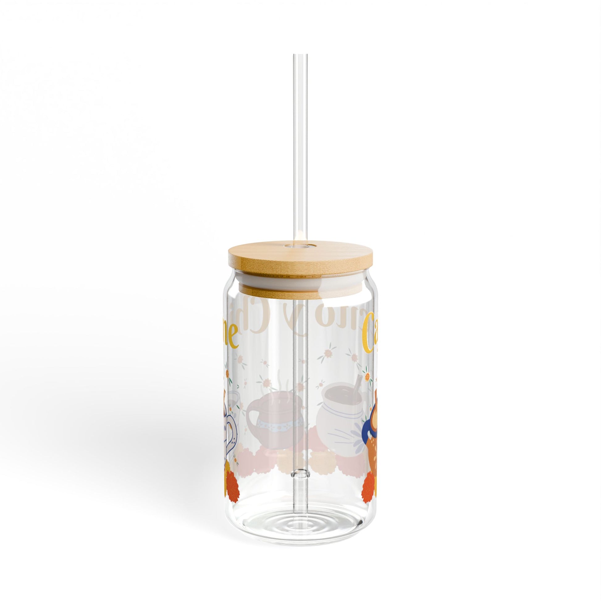 This vibrant Cafecito y chisme themed sipper glass with cantaros and flowers is perfect for enjoying your favorite beverages while catching up with friends. Ideal for those who love coffee chats and social gatherings, this glass is a great addition to your kitchen or barware collection. Perfect for celebrations like Cinco de Mayo or casual get-togethers with loved ones.