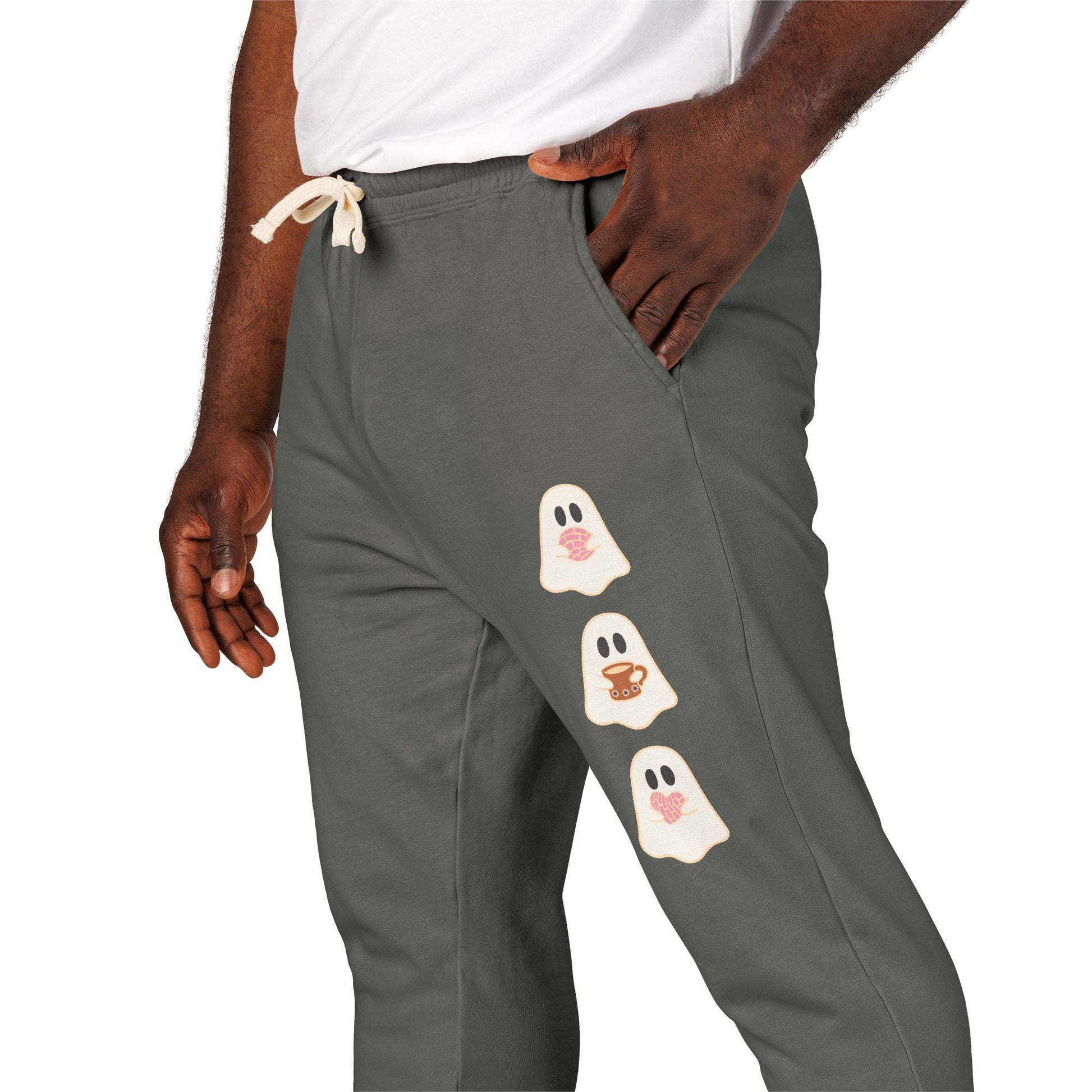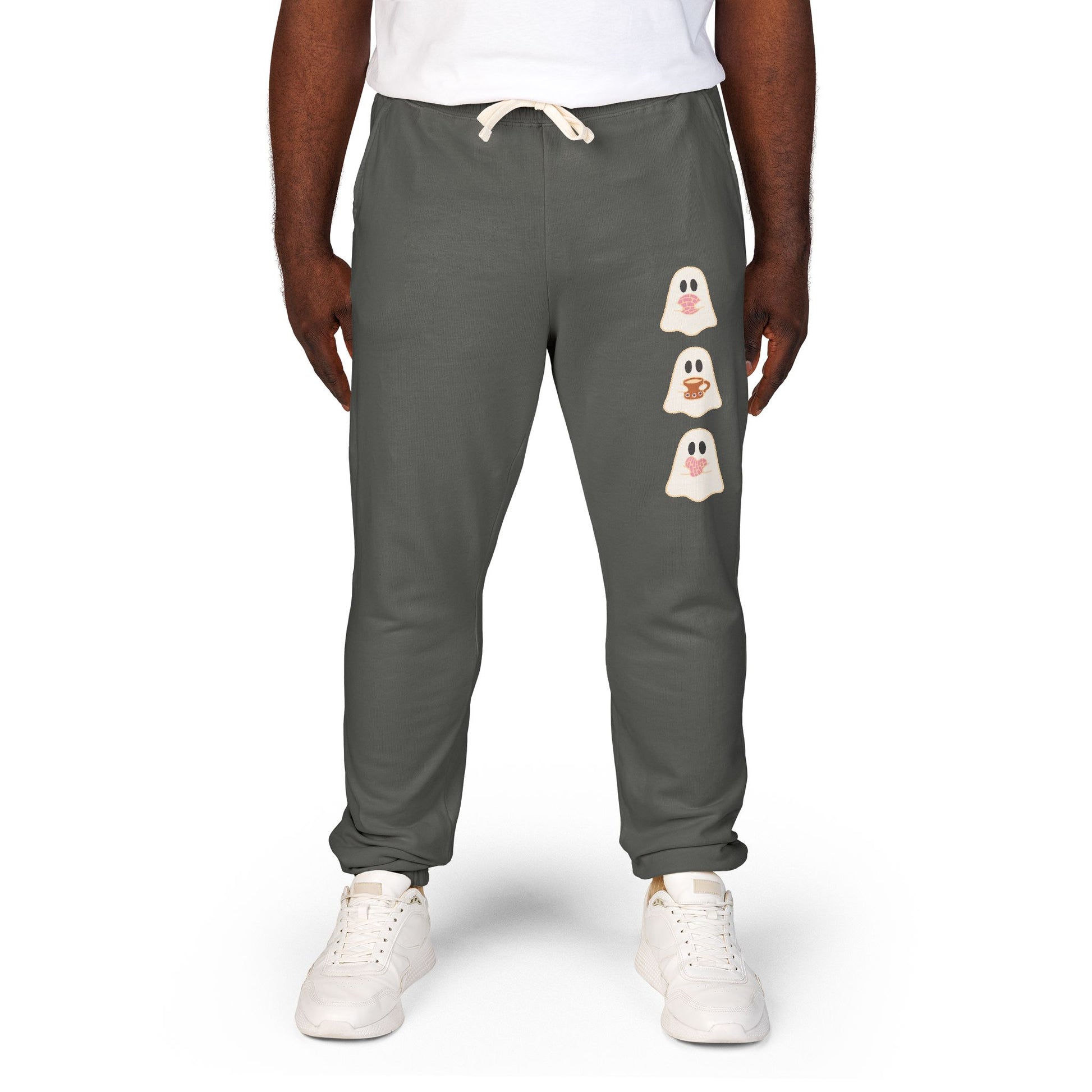 Fleece Sweatpants - Concha Season with Ghosts Eating Conchas Design