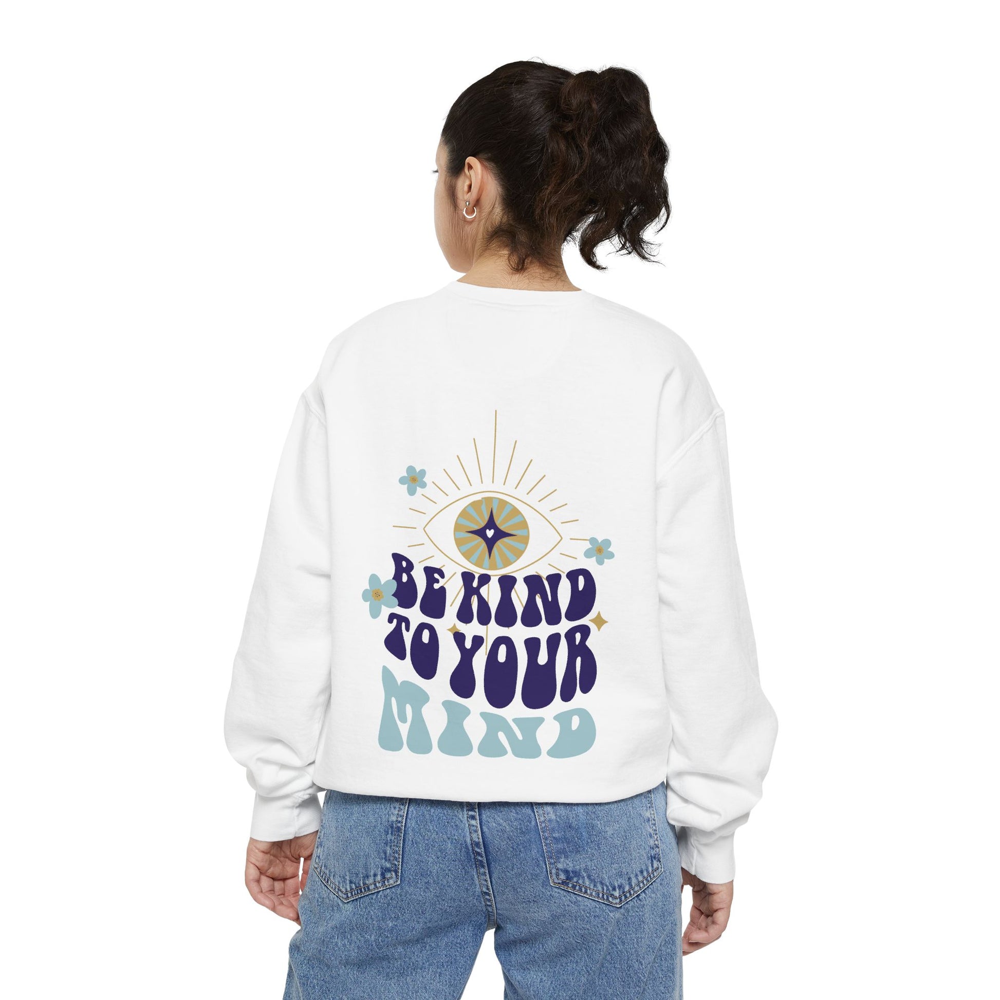"Be Kind To Your Mind" Unisex Crewneck Sweatshirt is more than just comfortable loungewear; it's a reminder to prioritize mental well-being. Crafted from a blend of soft, cozy fabrics, this sweatshirt provides warmth and comfort for everyday wear. The unisex design ensures a relaxed fit for anyone, making it a versatile addition to your wardrobe. With the uplifting message "Be Kind To Your Mind" prominently displayed, this sweatshirt not only keeps you warm but also promotes a positive mindset and self-care. Perfect for cozy days at home or casual outings, it's a meaningful statement piece that encourages mindfulness and self-compassion.